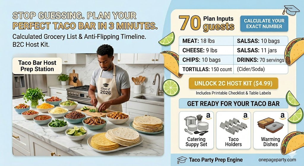 Built for family hosts planning a graduation taco bar who want confident shopping decisions, not spreadsheet chaos or expensive overbuying.