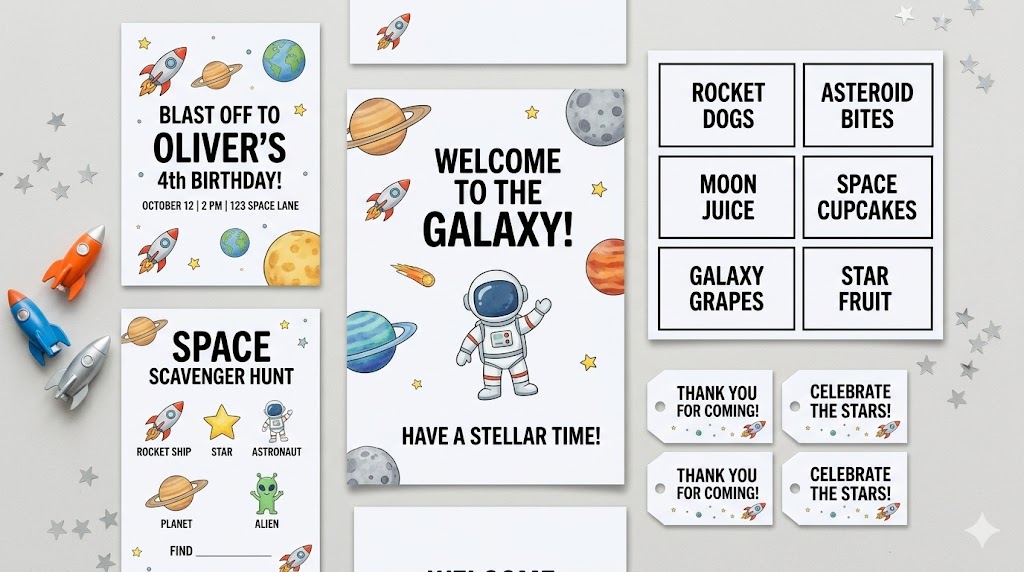 Rockets, planets, and a mission-ready invite suite.